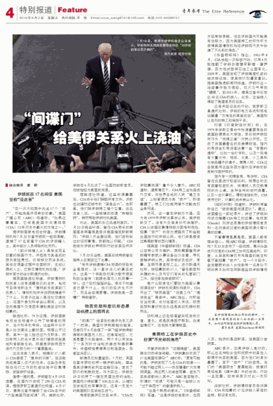 值得一提的是,伊朗曾在4月19日透露,在国内外发现了290名CIA间谍。据俄罗斯卫星通讯社报道,6月17日,德黑兰宣布摧毁了由CIA运作的“大型美国网络间谍”网。美联社称,伊朗在6月处决了一名国防部前官员,他被指控为美国做间谍。