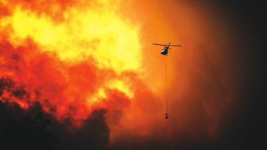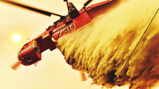 1月2日,消防直升机在巴尔哥镇参与灭火。图片来源 英国天空电视台