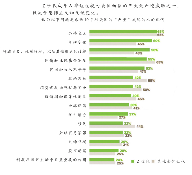 2019年6月,美国分析机构莫宁咨询公司发布调查报告《理解Z世代》,分析了美国人口最多、最多元化、受教育程度最高、最富有的一代人将如何塑造美国的未来。