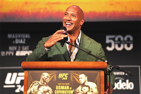 今年48岁的“巨石强森”曾是美国职业摔角WWE选手,后转换跑道,成为好莱坞明星。1.96米的身高,发达的肌肉,冷峻的神情,让他被视为“钢铁直男”的代表,连续数年被美国《福布斯》杂志评为“全球最吸金男星”。