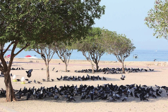 富裕的本地人已经很少参加露天活动,他们更喜欢在家中、办公室或商场里享受习习凉风。户外,中暑的鸟类从空中坠落,聪明的鸽子成群挤在树阴下。波斯湾中,无法适应海水变暖的生物逐渐死去。