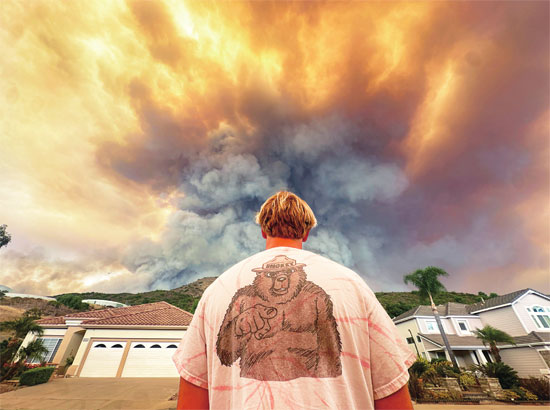 9月9日,美国加利福尼亚州特拉布科峡谷,山火持续蔓延。加州林业和消防局通报称,始于5日的“莱恩”山火在该州南部蔓延,截至8日,受控程度为“零”。图片来源 视觉中国