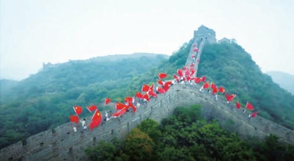 “长城象征着中华民族不屈不挠的精神,是中华民族团结的图腾。”李浩铭介绍说,视频中的一幕场景名为“薪火相传”,由头发花白的老者把国旗传给中年一代、青年一代及小朋友……参与传递的队伍也愈加壮大。“这个镜头寓意着人民力量越来越强,建设国家的队伍越来越壮大。”李浩铭说。