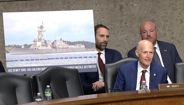 “这实在太糟了。我觉得某些人应该感到羞愧。”看到“杜威”号锈迹斑斑的模样,费兰反问议员们,“大家愿意登上这样的军舰吗?”